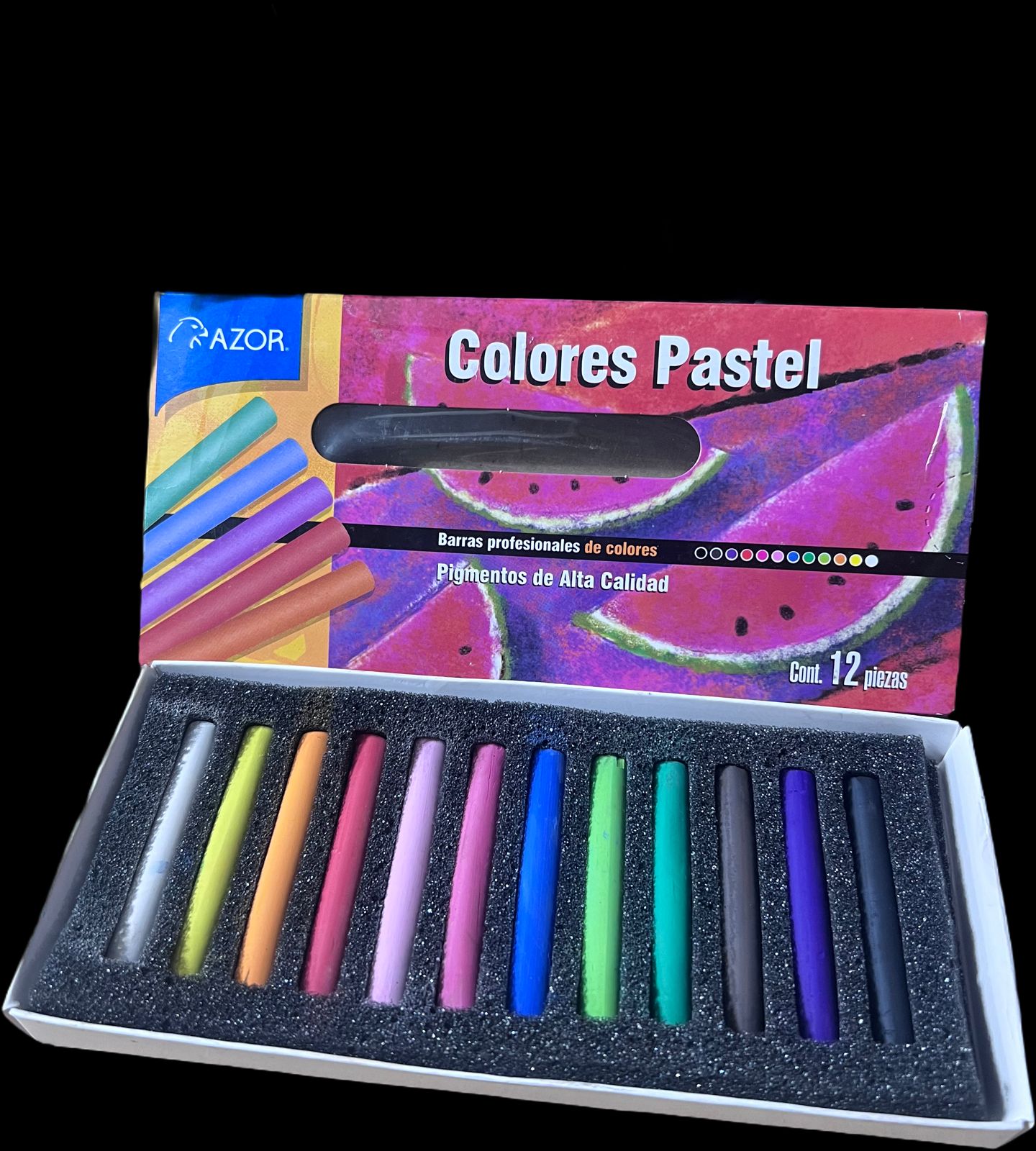 Colores pastel en seco, marca azor con 12 piezas