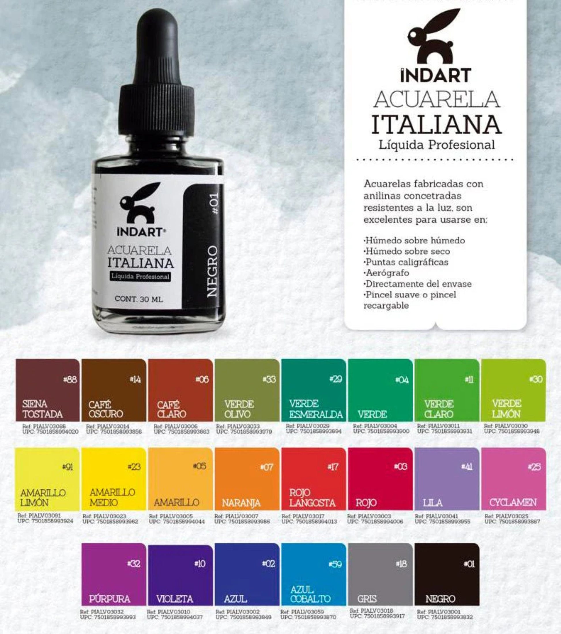 PINTURA ACUARELA ITALINA INDART 30 ML