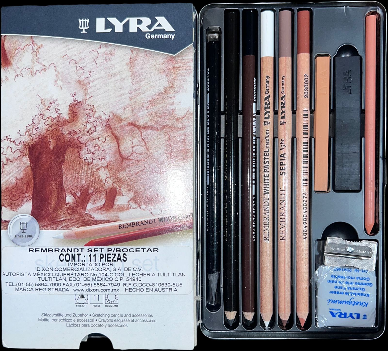 Surtido de lápices y barras para boceto de alta calidad superior con mina extraordinariamente resistente y fluido excepcional. Un equilibrio perfecto entre los instrumentos secos y grasos ideal para dibujo boceto